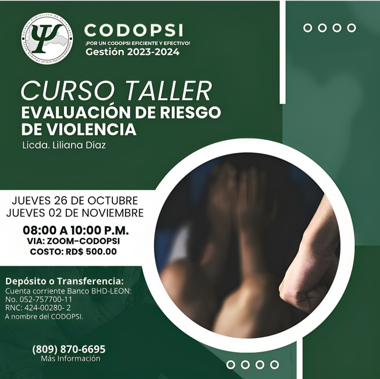 El Colegio Dominicano de Psicólogos (CODOPSI), dio inicio este jueves 26 de octubre un Curso-Taller sobre la Evaluación de Riesgo de Violencia.