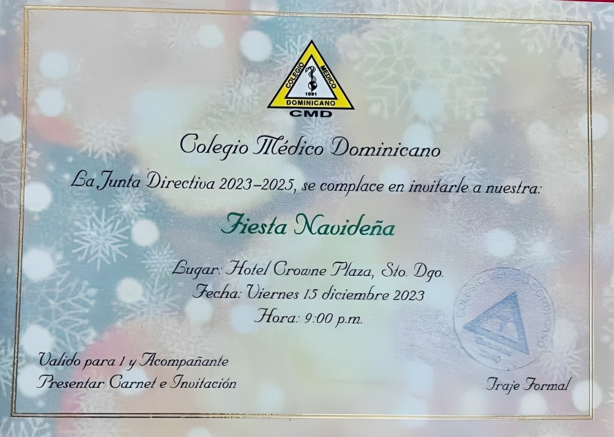 Santo Domingo. – El Colegio Médico Dominicano anunció la realización de su tradicional fiesta navideña.