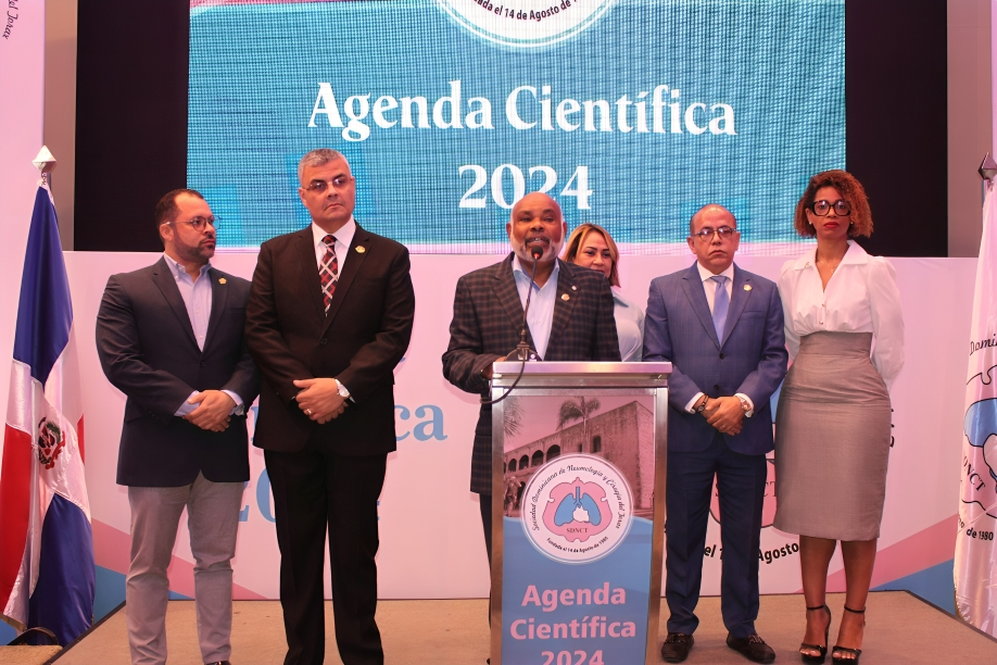 Santo Domingo. -La Sociedad Dominicana de Neumología y Cirugía del Tórax presentó su Agenda Científica 2024, la cual contiene las diversas acciones y actividades a desarrollar durante el año. La actividad estuvo presidida por el Dr. Alfredo Matos Hoepelman, presidente de la Sociedad, la presentación de la agenda científica estuvo a cargo del Dr. Julio Jiménez, Vicepresidente, mientras que la Dra. Ángela Araujo realizó la invocación a Dios.