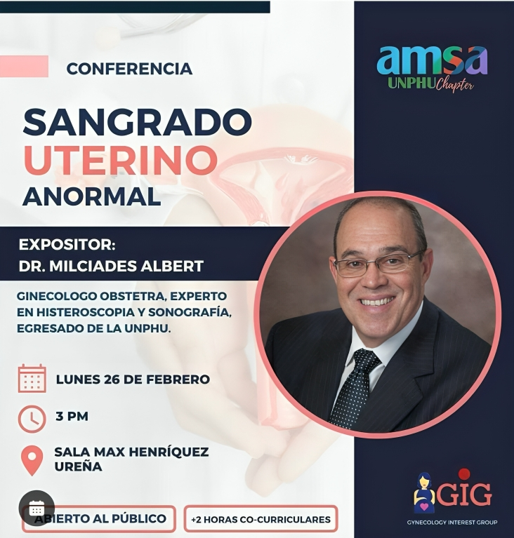 Santo Domingo. -La Organización sin fines de Lucro AMSA-UNPHU invita a participar en lo que será su charla sobre «Sangrado Uterino Anormal», con el objetivo de reflexionar y disipar las dudas e inquietudes acerca de este tema.
