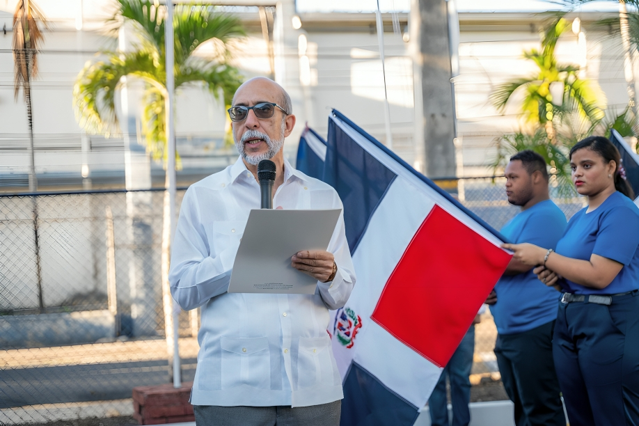 Previa a las 8:00 de la mañana entró al parqueo la marcha abanderada, compuesta por estudiantes y profesores del Centro Educativo Multidimensional Dr. Jordi Brossa y continuó con las palabras de bienvenida y motivación, a cargo del señor Ramón Mena, director general de Rehabilitación, quien dijo: “Hoy rendimos honor a nuestra patria y a nuestra bandera, así como a los héroes y heroínas que hicieron posible el nacimiento de nuestra nación libre y soberana”.
