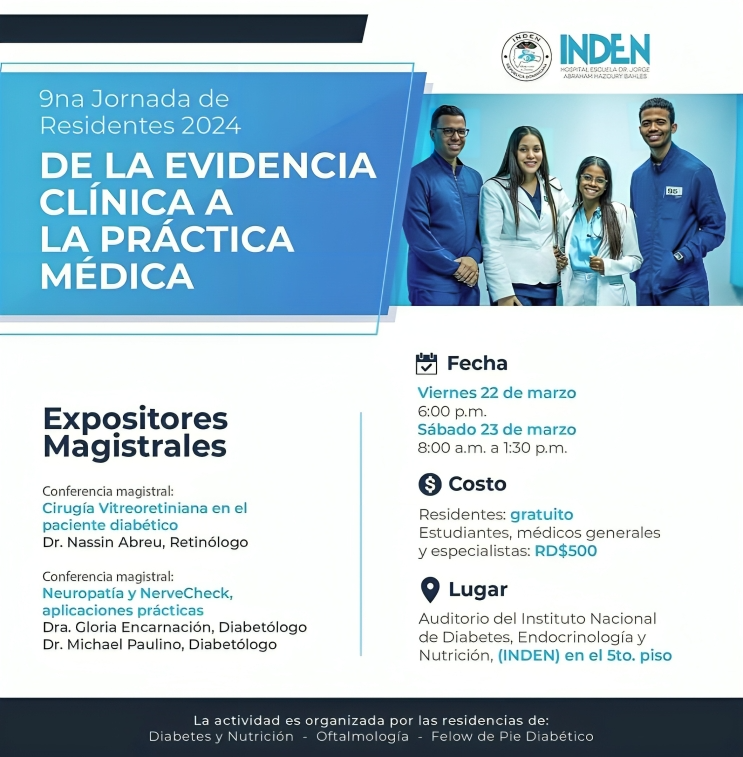 Santo Domingo.- El Instituto Nacional de Diabetes (INDEN), anunció la 9na Jornada de Residentes titulada «De la evidencia clínica a la práctica médica».