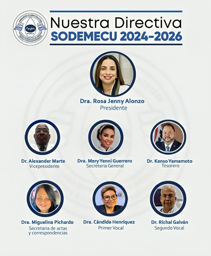 Santo Domingo.- Con el objetivo de reafirmar su compromiso y disposición de servir para contribuir con el desarrollo de la Medicina Crítica y Cuidados Intensivos en el país, la Sociedad Dominicana de Medicina Crítica y Cuidados Intensivos (SODEMECU), a través de su cuenta oficial de Instagram @sodemecurd, presentó formalmente su junta directiva para el período 2024-2026, presidida por la doctora Rosa Jenny Alonzo.