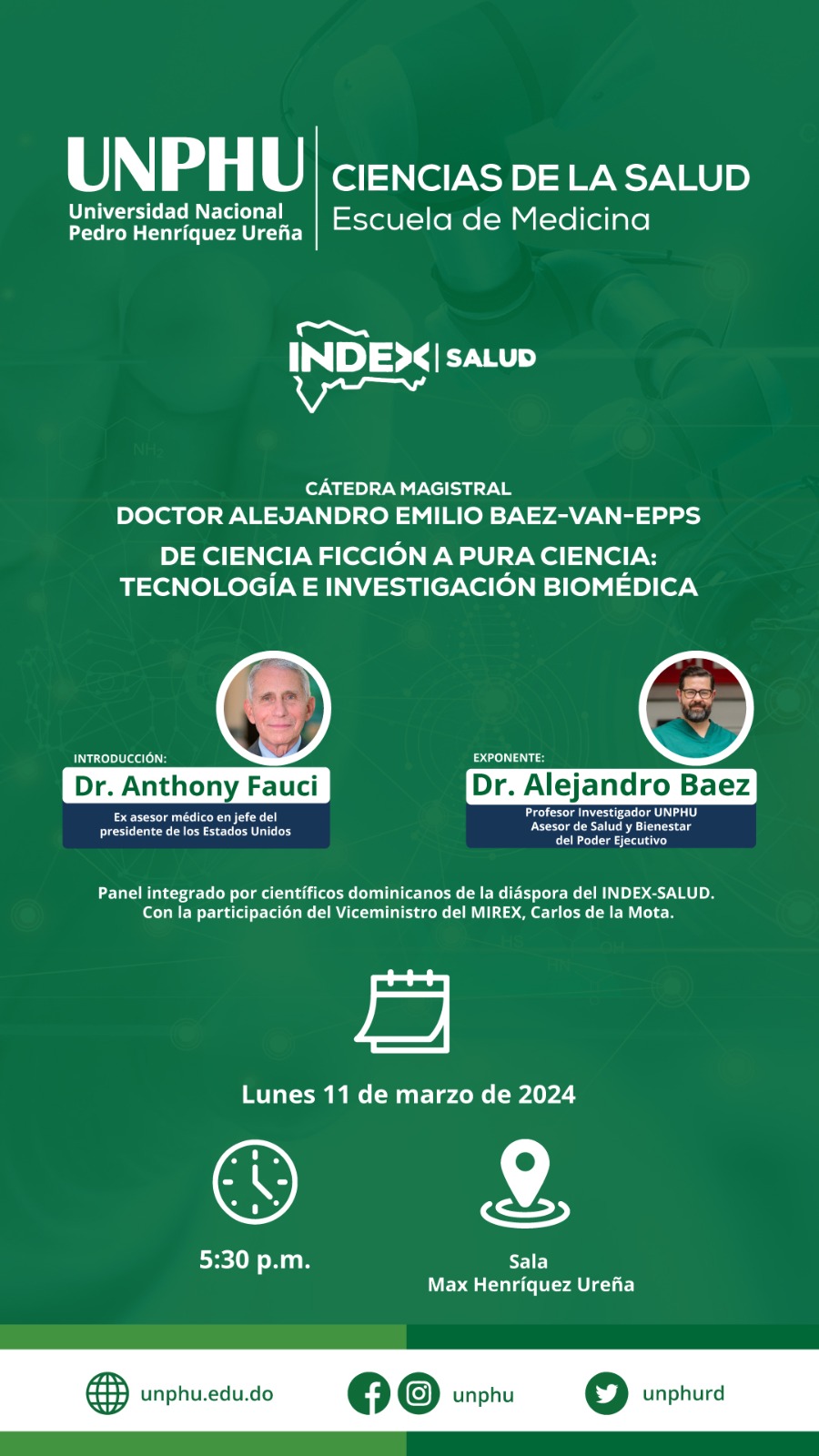 Esta conferencia magistral titulada «De ciencia ficción a pura ciencia: navegando la intersección entre biología y tecnología, tiene como objetivo explorar esa intersección proporcionando una visión integral de la importancia de las ciencias básicas, destacando la innovación biomédica en la República Dominicana.