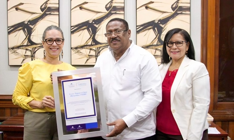 Santo Domingo.- “Por haber cumplido con los Estándares en el Ranking de Transparencia y garantizar el Derecho de la Libertad de Acceso a la Información Pública”, el Servicio Regional de Salud Metropolitano (SRSM) fue galardonado por la Dirección General de Ética e Integridad Gubernamental (DIGEIG), la cual es dirigida por la doctora Milagros Ortiz Bosch.