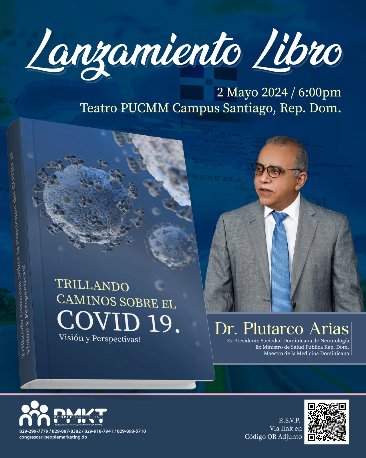 Santo Domingo. – El ex presidente de la Sociedad Dominicana de Neumología y Cirugía del Tórax (SDNCT), ex Ministro de Salud Pública y Maestro de la Medicina Dominicana, Dr. Plutarco Arias, invita al Lanzamiento del Libro «Trillando Caminos Sobre el COVID-19. Visión y Perspectivas».