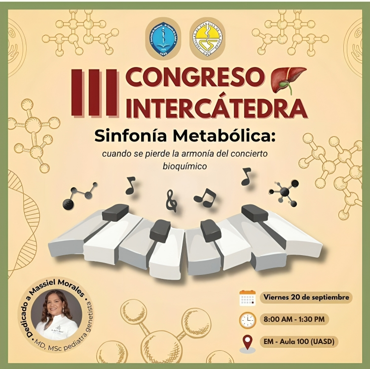 Santo Domingo.- La Facultad de Ciencias de la Salud de la Universidad Autónoma de Santo Domingo (FCSUASD), invita a participar en lo que será el III Congreso Intercátedra 2024. Sinfonía Metabólica: Cuando se pierde la armonía del concierto bioquímico.
