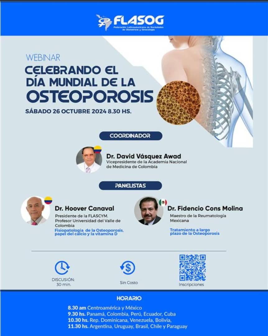 Santo Domingo.- La Federación Latinoamericana de Sociedades de Obstetricia y Ginecología (FLASOG), invita a participar en el webinar en conmemoración al Día Mundial de la Osteoporosis.