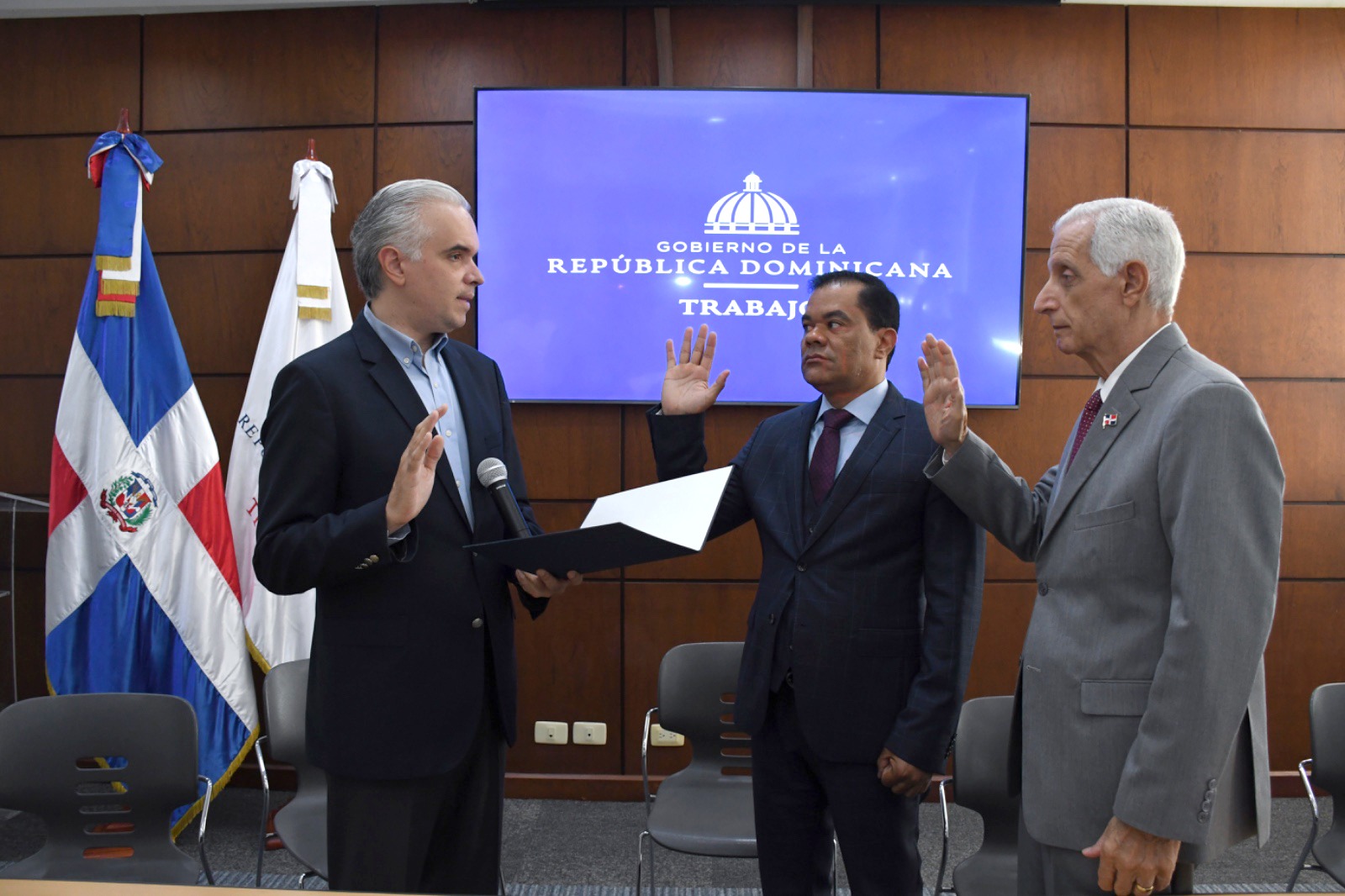 Santo Domingo. El ministro de Trabajo y presidente del Consejo Nacional de Seguridad Social (CNSS), Luis Miguel De Camps juramentó este viernes a Elías Báez de los Santos, como nuevo Director General de Información y Defensa de los Afiliados a la Seguridad Social (DIDA), y a Henry Sahdalá Dumit como tesorero de la Seguridad Social (TSS).