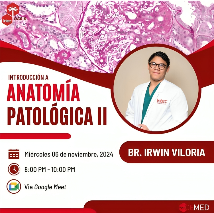 Santo Domingo.- El Comité de Estudiantes de Medicina del Instituto Tecnológico de Santo Domingo (CEMED-INTEC), invita a participar en la charla sobre Introducción a Anatomía Patológica II, la cual se llevará a cabo este miércoles 06 de noviembre.