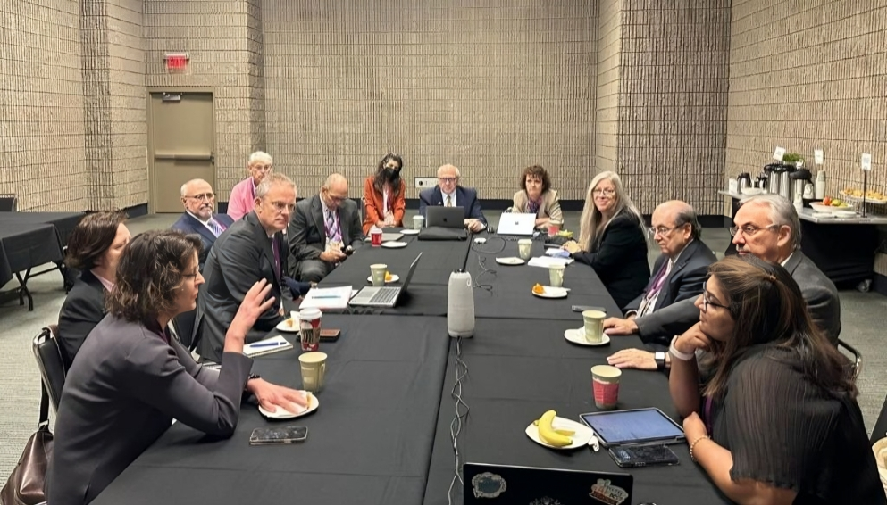 La actividad, fue presidida por el doctor Peter DeJong, presidente de IAMSE, y moderada por la doctora Alison Whelan de AAMC. Contó también con la participación del doctor Ricardo León, presidente de la World Federation for Medical Education (WFME), y la doctora Genoveva Moineau, su vicepresidenta, así como con otros participantes que se unieron de manera presencial y virtual a través de Zoom desde diversas partes del mundo.
