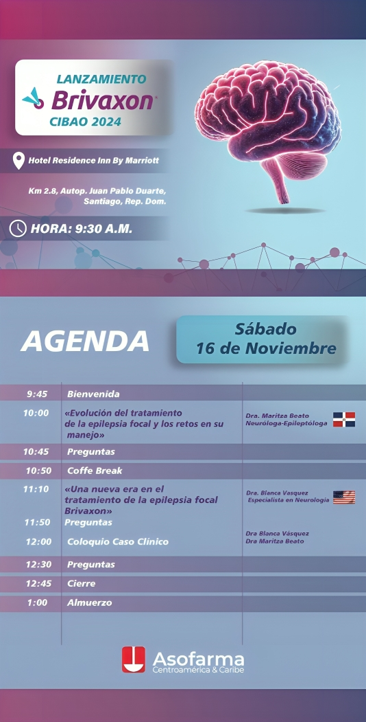 Santo Domingo. – ASOFARMA presentó oficialmente Brivaxon en un evento realizado el sábado 16 de noviembre a las 9:30 a.m. en el Hotel Residence Inn By Marriott. El encuentro reunió a destacados especialistas en neurología para abordar los avances y desafíos en el tratamiento de la epilepsia focal.