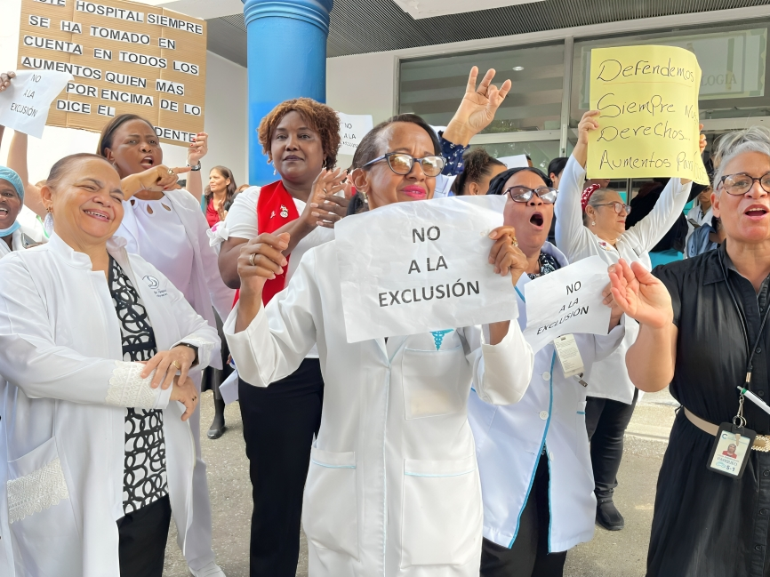 Yudelka Beltrán, representante del gremio de gastroenterología, indicó que la manifestación se originó luego de conocer de manera informal que “el doctor Mario Lama nos ha excluido del aumento salarial que dictaminó el presidente Abinader”.