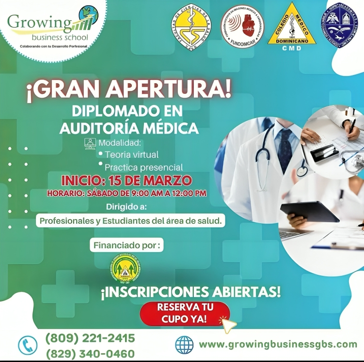 Santo Domingo. – La Fundación Docente en Imágenes Médicas y Cardiovasculares (FUNDOIMCAR) se complace en anunciar la apertura de su Diplomado en Auditoría Médica, diseñado para profesionales y estudiantes del área de la salud. Este programa, que combina teoría virtual y práctica presencial, comenzará el 15 de marzo y se llevará a cabo los sábados de 9:00 a.m. a 12:00 p.m.