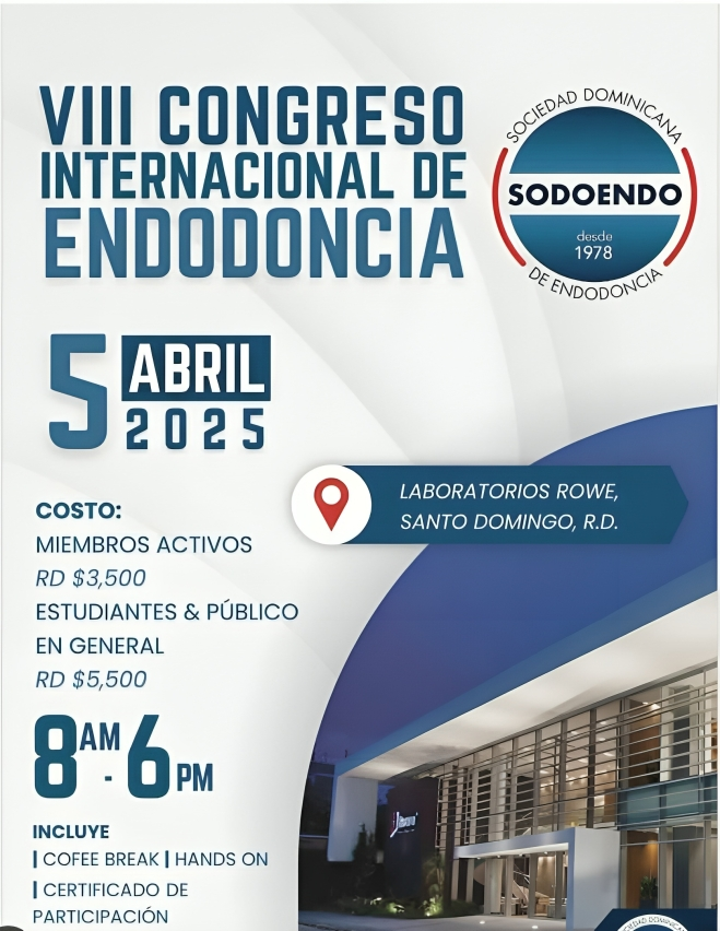 Santo Domingo. – La Sociedad Dominicana de Endodoncia se complace en invitar a participar en el VIII Congreso Internacional de Endodoncia, un evento que reunirá a reconocidos expertos nacionales e internacionales para compartir los últimos avances científicos y tecnológicos en esta especialidad.