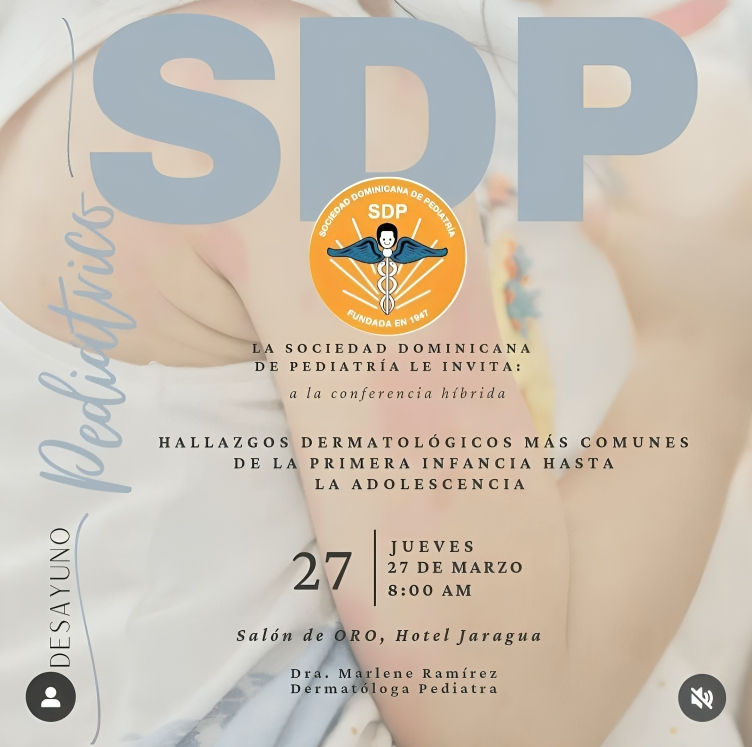 Santo Domingo, RD – La Sociedad Dominicana de Pediatría invita a participar en la conferencia titulada «Hallazgos Dermatológicos más Comunes de la Primera Infancia hasta la Adolescencia», que se llevará a cabo el próximo jueves 27 de marzo a las 8:00 de la mañana en el Salón Oro del Hotel Jaragua. Este evento se ofrecerá en un formato híbrido.