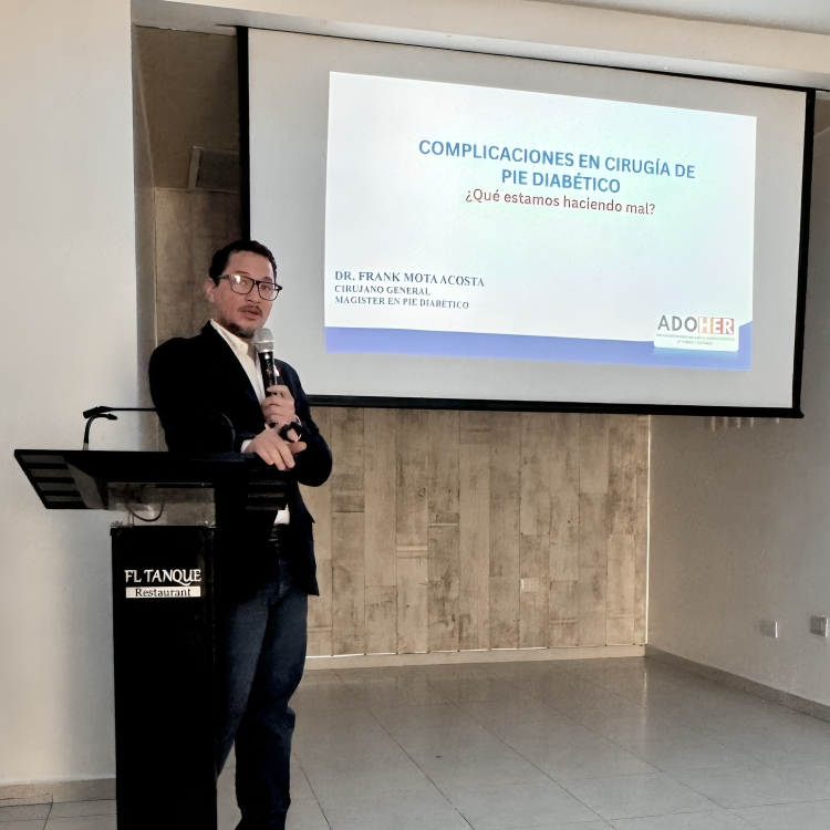 San Francisco de Macorís, República Dominicana. – Durante la reciente jornada de actualización sobre el manejo del pie diabético, organizada por la Filial Nordeste del Colegio Dominicano de Cirujanos, el Dr. Frank Mota Acosta, presidente de la Asociación Dominicana para el Manejo Holístico de las Heridas y Ostomías (ADOHER), presentó los beneficios del Saint Elian Wound Score System (SEWSS) en la prevención de complicaciones quirúrgicas en cirugías de pie diabético.