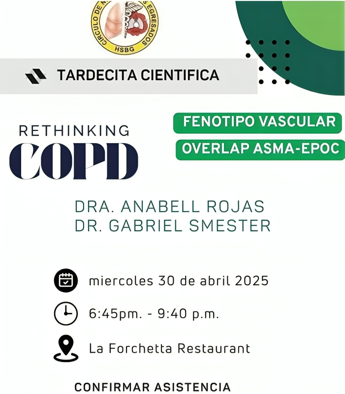 Los expositores, Dra. Anabell Rojas y Dr. Gabriel Smester, compartirán conocimientos actualizados y estrategias innovadoras para mejorar el abordaje de esta condición respiratoria. La actividad está dirigida a profesionales de la salud interesados en discutir, cuestionar y actualizar sus conocimientos en neumología.