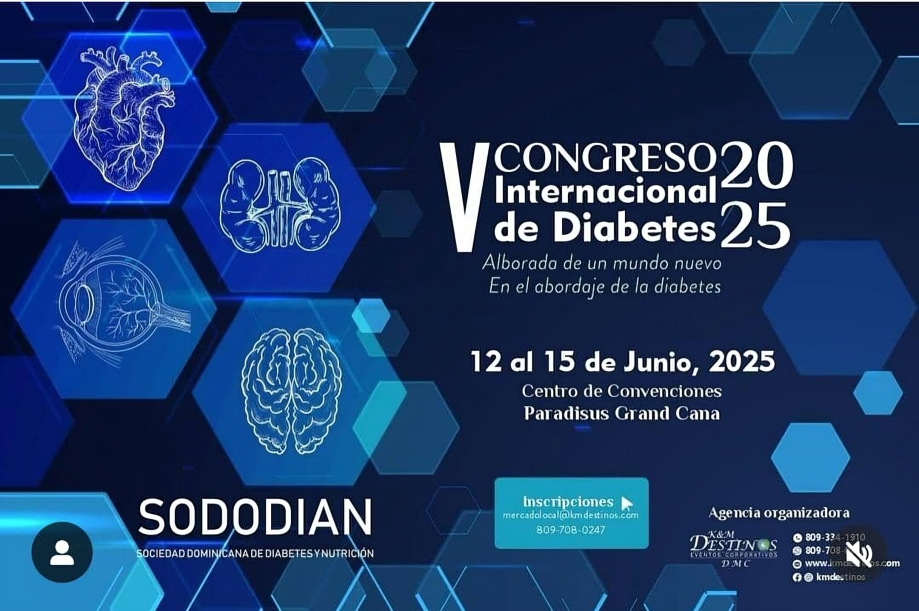 Santo Domingo. – La Sociedad Dominicana de Diabetes y Nutrición (SODODIAN) invita a profesionales de la salud y público interesado a participar en su V Congreso Internacional de Diabetes 2025, que se llevará a cabo del 12 al 15 de junio de 2025 en el Centro de Convenciones Paradisus Grand Cana, Punta Cana.