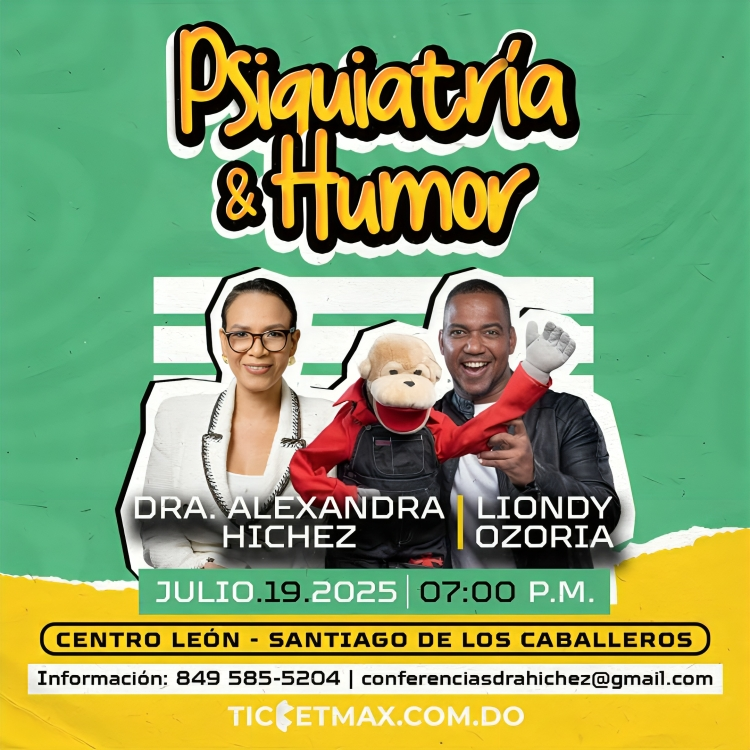 Santo Domingo.- Ante el notable interés del público, la reconocida psiquiatra Dra. Alexandra Hichez ha programado una nueva fecha adicional para su exitoso conversatorio sobre salud mental titulado “Psiquiatría & Humor”, que se llevará a cabo junto al ventrílocuo Liondy Ozoria, quien complementará el diálogo sobre bienestar emocional con su característico humor e interacciones con sus personajes, el sábado 19 de julio a las 7:00 PM en el Centro León de Santiago de los Caballeros.