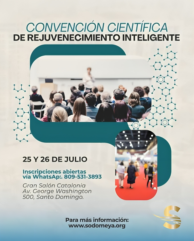 Santo Domingo. – La Sociedad Dominicana de Medicina Estética y Anti Envejecimiento (SODOMEYA) invita a profesionales de la salud y especialistas en estética a participar en la Convención Científica de Rejuvenecimiento Inteligente, un evento de alto nivel que se llevará a cabo los días 25 y 26 de julio en el Gran Salón Catalonia, Santo Domingo.
