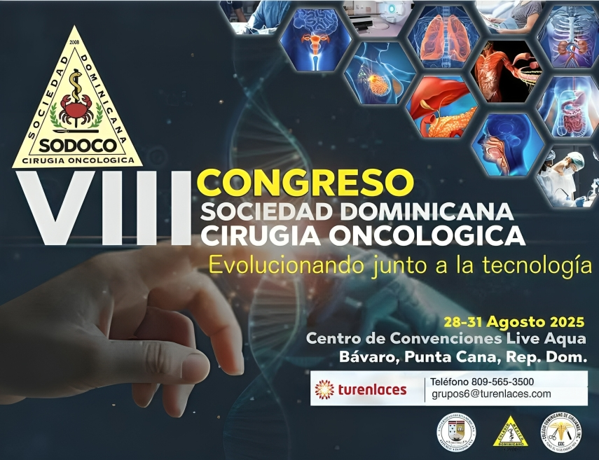 Santo Domingo. – La Sociedad Dominicana de Cirugía Oncológica (SODOCO) anunció la celebración de su VIII Congreso, que se llevará a cabo del 28 al 31 de agosto de 2025 en el Centro de Convenciones Live Aqua, Bávaro, Punta Cana. Bajo el eslogan «Evolución junto a la tecnología», el evento busca convertirse en un espacio de actualización científica e intercambio profesional sobre los últimos avances en cirugía oncológica, reuniendo a destacados especialistas nacionales e internacionales.