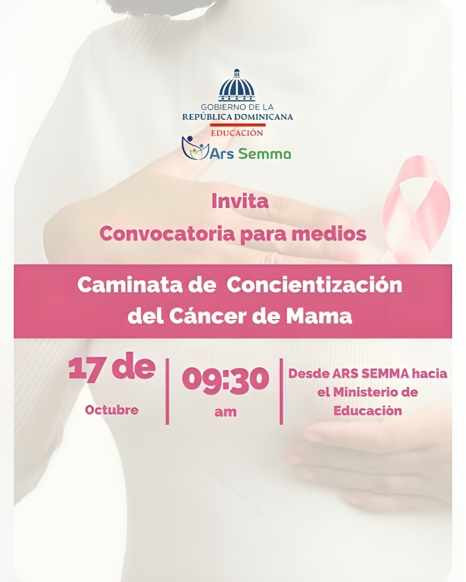 Santo Domingo. – La Aseguradora de Riesgos de Salud Para Maestros (ARS SEMMA) invita a participar en la caminata de concienciación «La educación se viste de Rosa», dirigida a sensibilizar a la población sobre la prevención y detección temprana del cáncer de mama.