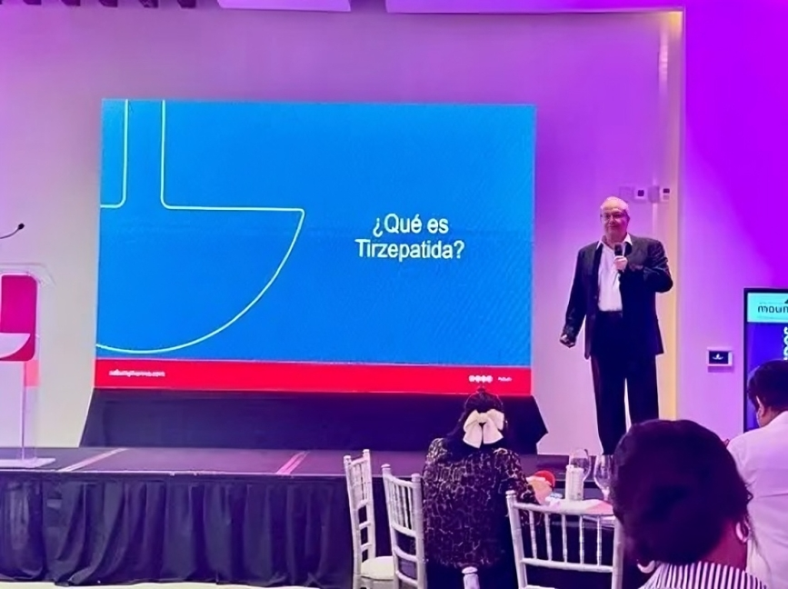 Durante su exposición, el especialista destacó los avances farmacológicos en el tratamiento de la obesidad y diabetes, explicando que «Hasta hace poco, los tratamientos disponibles actuaban solo sobre uno de estos receptores. Hoy contamos con agonistas duales, que combinan ambas acciones y ofrecen mejores resultados en la reducción del peso y el control metabólico».