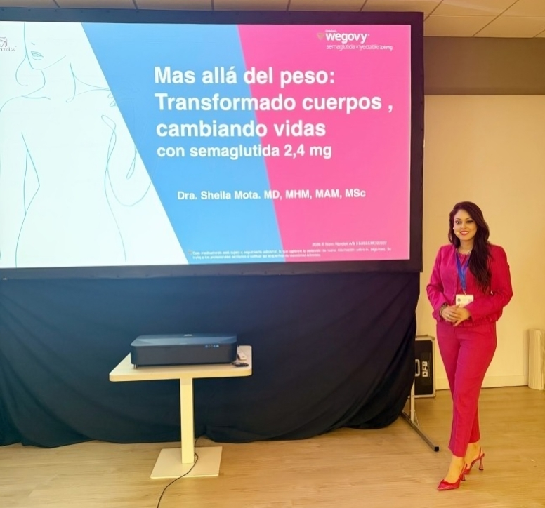 Reconocida como referente en medicina estética para pacientes oncológicos y con enfermedades crónicas, la Dra. Mota Antigua compartió sus conocimientos con la comunidad médica asistente. Su participación incluyó una exposición magistral sobre el abordaje estético del paciente con enfermedades crónicas, un perfil que puede representar un reto asistencial significativo para los especialistas.