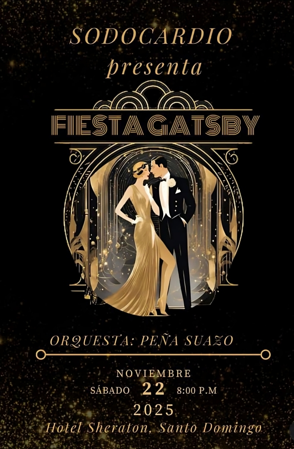 Santo Domingo. – La Sociedad Dominicana de Cardiología (SODOCARDIO) invita a todos sus miembros a ser parte de la «Fiesta Gatsby», una celebración que transportará a los asistentes a la opulencia y el glamour característicos de la década de 1920.