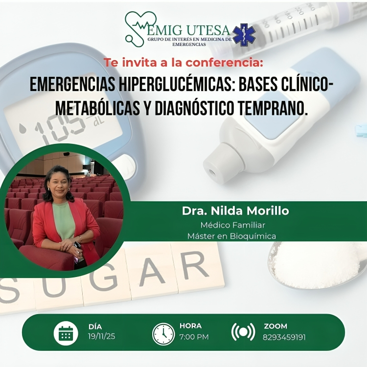La conferencia, programada para mañana miércoles 19 de noviembre de 2025 a las 7:00 de la noche a través de la plataforma Zoom, tiene como objetivo principal capacitar a los participantes en la identificación temprana y manejo inicial de las emergencias hiperglucémicas.