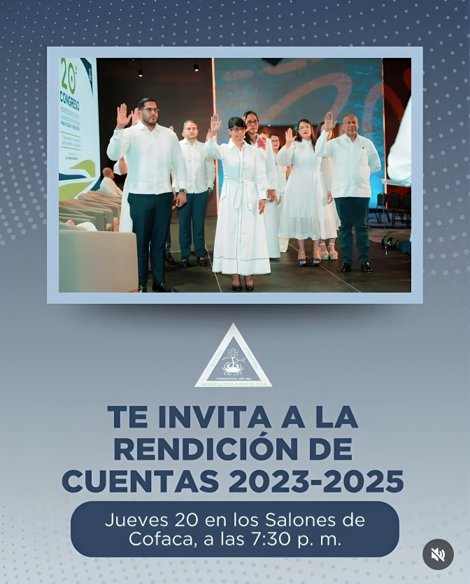 Santo Domingo. – La Sociedad Dominicana de Hematología y Oncología (SODOHEMO) invita a todos sus miembros a participar en su Rendición de Cuentas correspondiente al período 2023-2025. Este encuentro está concebido como un espacio de transparencia, crecimiento y compromiso con la calidad del acto oncológico y el fortalecimiento continuo de la sociedad.