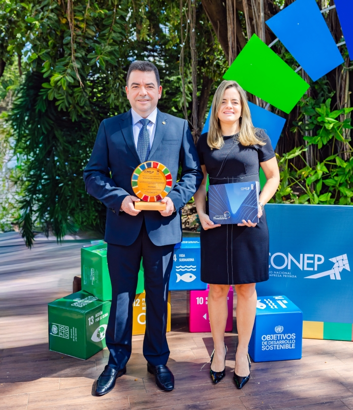 El reconocimiento fue entregado a MAPFRE por Celso Juan Marranzini, presidente del CONEP; Ana María Díaz, representante residente del PNUD; Paíno Henríquez, ministro de Medio Ambiente y César Dargam, vicepresidente del CONEP.