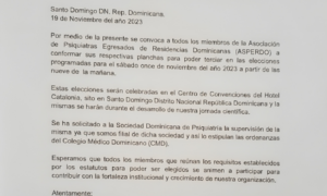 La Asociación de Psiquiatras Egresados de Residencias Dominicanas (ASPERDO), a través de un comunicado, exhorta a todos sus miembros a conformar sus...