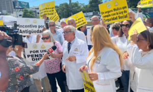 Cientos de facultativos pertenecientes a la Asociación de Médicos Pensionados y Jubilados en edad de retiro del Colegio Médico Dominicano, protestaron hoy...