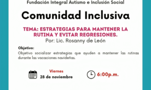 Santo Domingo. – La Fundación Integral Autismo e Inclusión Social invita a participar en el último encuentro de Comunidad Inclusiva del año...