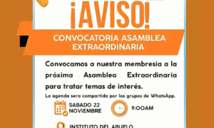 Santo Domingo. – La Sociedad Dominicana de Geriatría convoca formalmente a todos sus miembros a participar en una Asamblea Extraordinaria que se...